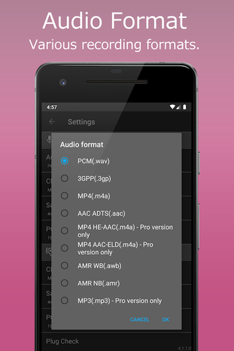يعمل ميكروفون تسجيل MyVoice PCM على نظام Android 9.0 أو أعلى. الإصدار الحالي للتطبيق هو 4.2.2.6.